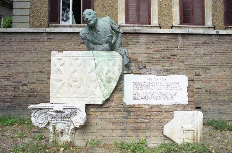 Un'iscrizione riporta i versi della poesia All’ombra, che ben rappresenta la satira e la pungente ironia popolare dei suoi componimenti: