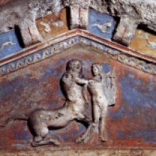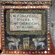 La costruzione del sepolcro, come testimoniano altre iscrizioni, si pone tra il principato di Tiberio e quello di Claudio (14-51 d.C.), ma continuò a essere utilizzato anche in seguito, in età flavia (69-96 d.C.), quando si datano il mosaico di Pomponius Hylas e alcune modifiche dell’apparato decorativo, fino all’età antonina (138-161 d.C.).
