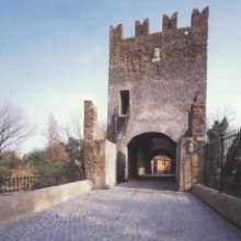 Si conserva inoltre una delle torri merlate destinata ai corpi di guardia sul versante a valle che proteggevano le porte di accesso al ponte; mentre fu aggiunta sul lato a monte un gabbiotto pensile (una latrina) nel XVI secolo e restaurata nella metà del XIX secolo. Recentemente a cura dell’Amministrazione Comunale è stato eseguito un intervento di consolidamento e di restauro conservativo di tutto il ponte.