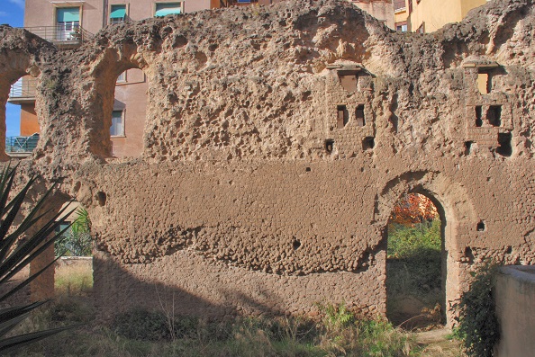 Le imponenti strutture superstiti ancora visibili tra le vie Rubattino e Franklin offrono un'idea seppur parziale della grandiosità dell'edificio, che le pareti in opera incerta di tufo con spigoli e archivolti in tufelli regolari, rivelano come l'esempio più precoce di tale tecnica costruttiva a Roma.