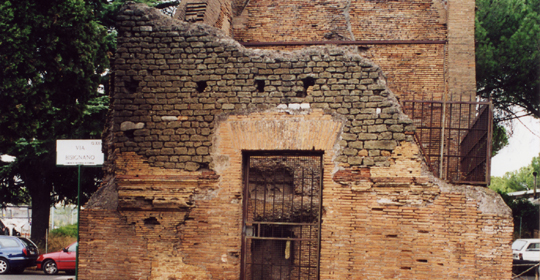 L'edificio sorge oggi lungo la via Appia Nuova, all'angolo con via Bisignano, nel luogo dove in origine era il tracciato della strada per Castrimoenium, la quale si staccava dall'Appia antica all'altezza del Casale di S. Maria Nova, presso il V miglio.
