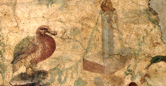 Ancora visibili sono altri due loculi, scavati direttamente nel tufo, disposti parallelamente e sormontati da una lunetta affrescata. La pittura, staccata e restaurata è oggi conservata presso l’Antiquarium Comunale: è delicata, caratterizzata da un discreto verismo e da una tecnica chiaroscurale. È raffigurato un paesaggio acquatico, forse allegoria dell’aldilà, popolato da anatre, ossia le anime dei defunti, in atteggiamenti vari e vivaci, disposte in perfetta simmetria ai lati di una fontana con un bacino quadrato, zampillante acqua da un vaso disposto su una colonnina.