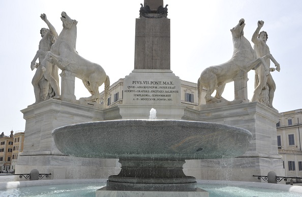 Le due fontane sarcofago sono parte dell’arredo monumentale della piazza e ne completano l’assetto definitivo progettato da Giuseppe Valadier (1762-1839).