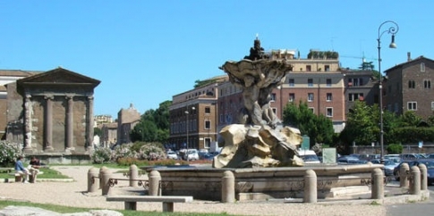 La grande fontana oggi in piazza Trilussa è stata edificata nel 1613 dal fiammingo Jan van Santen (1550-1621), noto in Italia con il nome di Giovanni Vasanzio, in collaborazione con Giovanni Fontana (1540-1614).