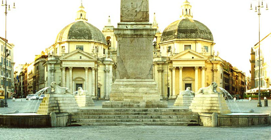 Tra XVI e XVII secolo la piazza assume sempre più un carattere monumentale: nel 1589 viene innalzato al centro l’obelisco per volere di papa Sisto V (1585-90); nel corso del ‘600 viene trasformata la porta del Popolo da Gian Lorenzo Bernini e realizzate le chiese gemelle di S.Maria dei Miracoli e S.Maria di Montesanto.