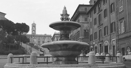 La fontana in piazza dell’Ara Coeli, realizzata nel 1589, dopo l’adduzione dell’Acqua Felice, è situata su una piazza non distante dal Campidoglio, lungo la più importante via di accesso al colle che, in quegli anni, stava subendo un profondo rinnovamento edilizio.
