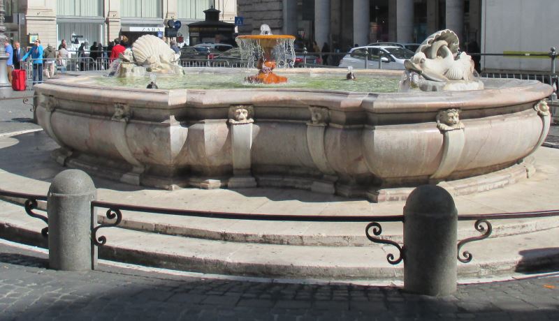 La fontana di piazza Colonna è stata realizzata tra il 1575 e il 1577 su disegno di Giacomo della Porta (1533-1602) ed è stata scolpita da Leonardo Sormani (c.1540-1602)