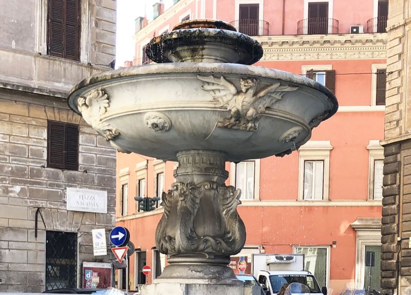 Progettata da Giacomo Della Porta (1533- 1602) nel 1572 e collocata in origine al centro di piazza del Popolo, la fontana di piazza Nicosia era una delle fontane pubbliche realizzate a Roma nel XVI secolo in seguito alla riattivazione dell’antico Acquedotto Vergine.