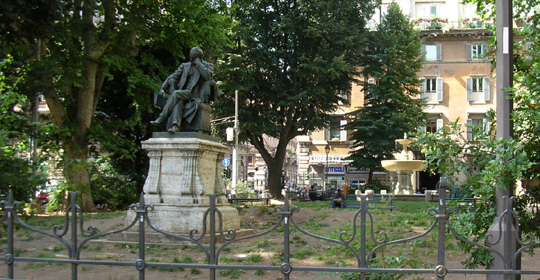 Subito dopo la sua morte si formò il comitato promotore del monumento, di cui fecero parte, tra gli altri, Giuseppe Zanardelli e Guido Baccelli. Nel 1903 la Giunta Comunale concesse la sistemazione in piazza Cairoli, lasciando poi decadere il provvedimento a causa delle tensioni internazionali. Tra il 1905 ed il 1906 era fatta sia la statua che il piedistallo (dove compare infatti la data "MCMVI"), ma soltanto il 18 luglio 1918 fu approvata l'installazione. Questa avvenne senza cerimonie, di notte, nel marzo 1919, all’interno del giardino di piazza Cairoli realizzato nel 1888 per volontà del barone Guglielmo Huffer a fianco della nuova via Arenula.